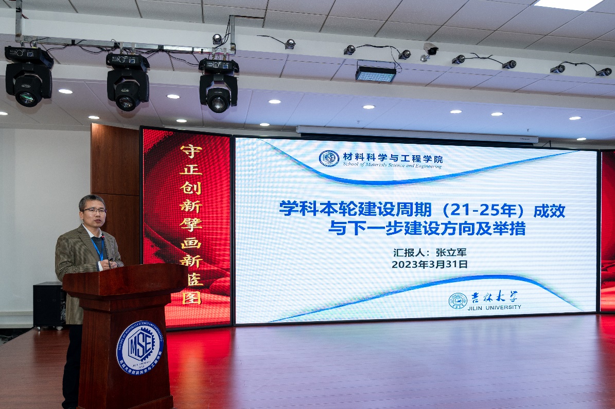 会议伊始张立军院长作学院工作报告,重点介绍了学院建设和发展目标,详细总结了学科本轮建设周期成效,通过数据比对了与对标学科的现存差距,科学分析了当前发展面临的形势,围绕平台建设、人才培养、师资队伍、科学研究、国际交流五个维度剖析了下一步建设方向及举措,为学院发展擘画了方向明确、路径清晰的新蓝图,希望全体教职工凝心聚力,守正创新,统筹推进平台建设,稳步提升人才培养质量,持续强化科学研究和社会服务的能力和水平,不断加强师资队伍建设,全面提升国际声誉与影响力,建设具有中国特色、世界一流的材料学科。