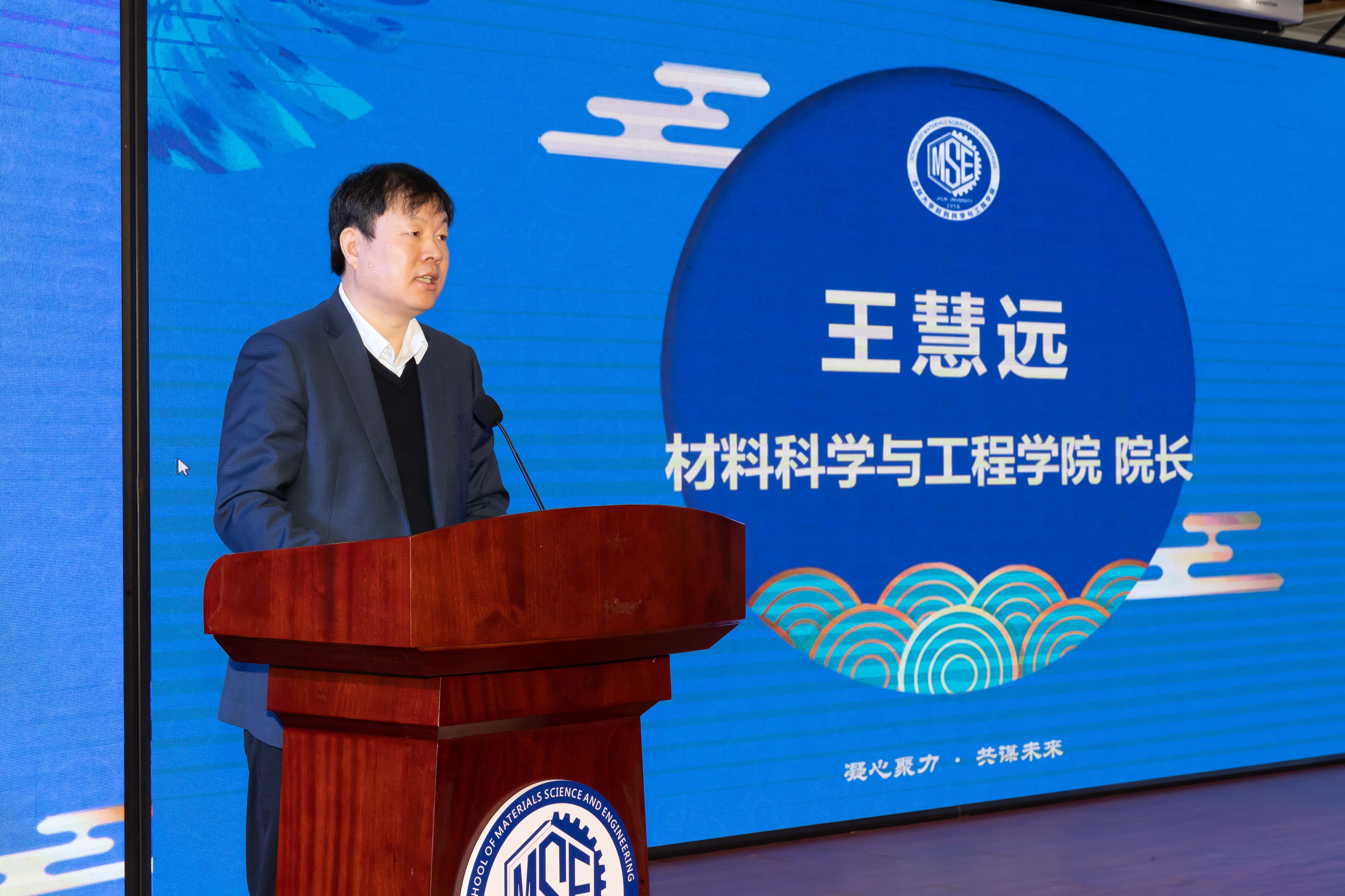 随后,院长王慧远从建设中国特色世界一流材料学科的初心讲到促进材料学科发展与新兴学科交叉融合,加快建成世界一流学科的展望。通过列举科学研究、人才培养等诸多方面取得的丰富建设成果,展现了学院发展面临的重大机遇和巨大挑战。最后王院长表达了“校友事业蓬勃发展与学院发展协同创造新的辉煌成就”的美好愿景。