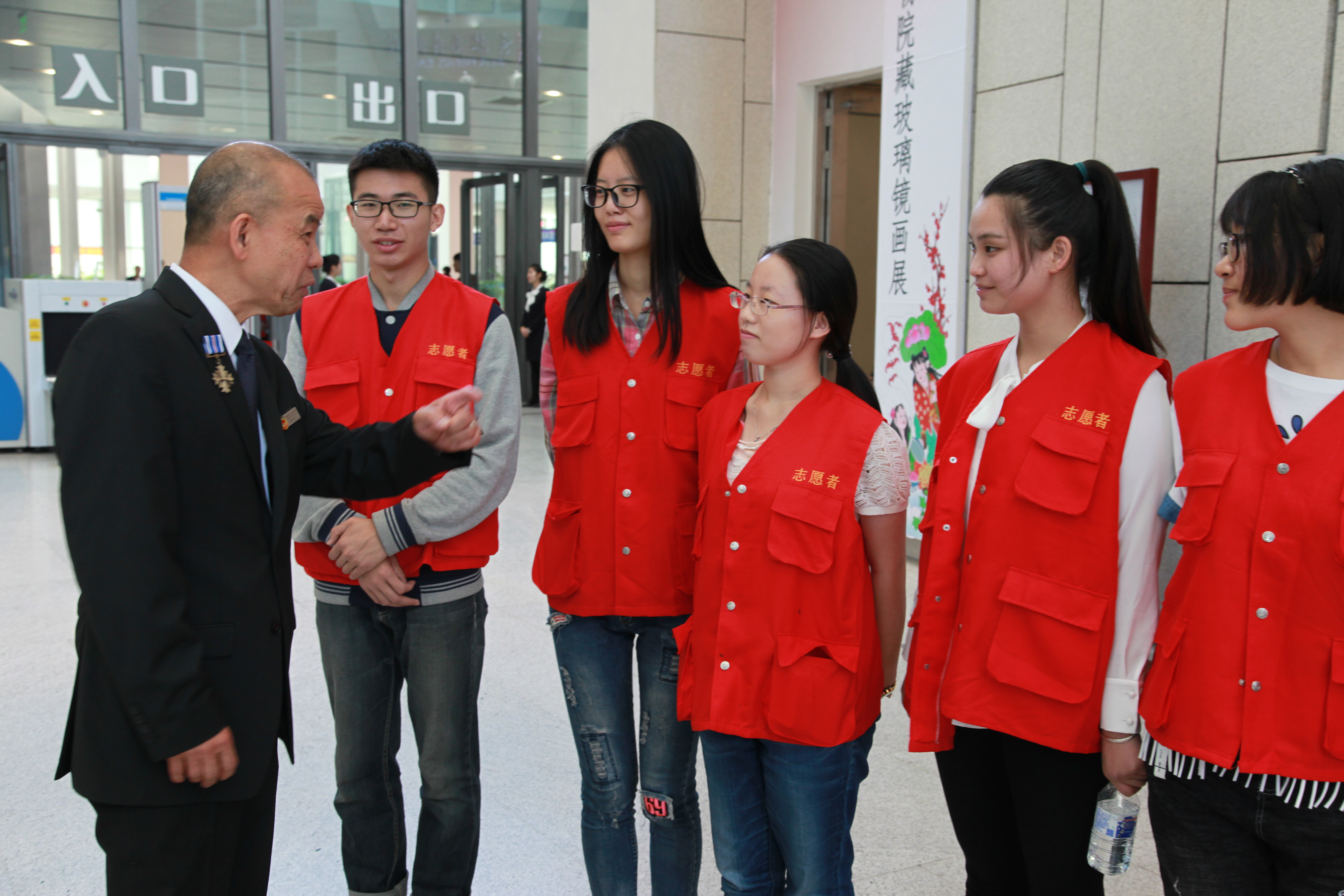 上午八点半志愿者到达吉林省博物馆,进行工作前准备,维护秩序引导嘉宾入场。九点整开幕式正式开始,阳光爱心学校志愿者、空军航空大学学员、武警吉林省总队官兵以及长春东光学校师生共同奏唱国歌。开幕式结束后志愿者引导参加开幕式的各级领导、海外华侨同胞、学校师生以及武警官兵参观展览,并与老人们交流畅谈,感受那个狼烟四起的时期,共同回忆那段战火纷飞的岁月。中午十一时,志愿者们成列而立,欢送各位嘉宾离开省博物馆,并与嘉宾领导合影留念。
