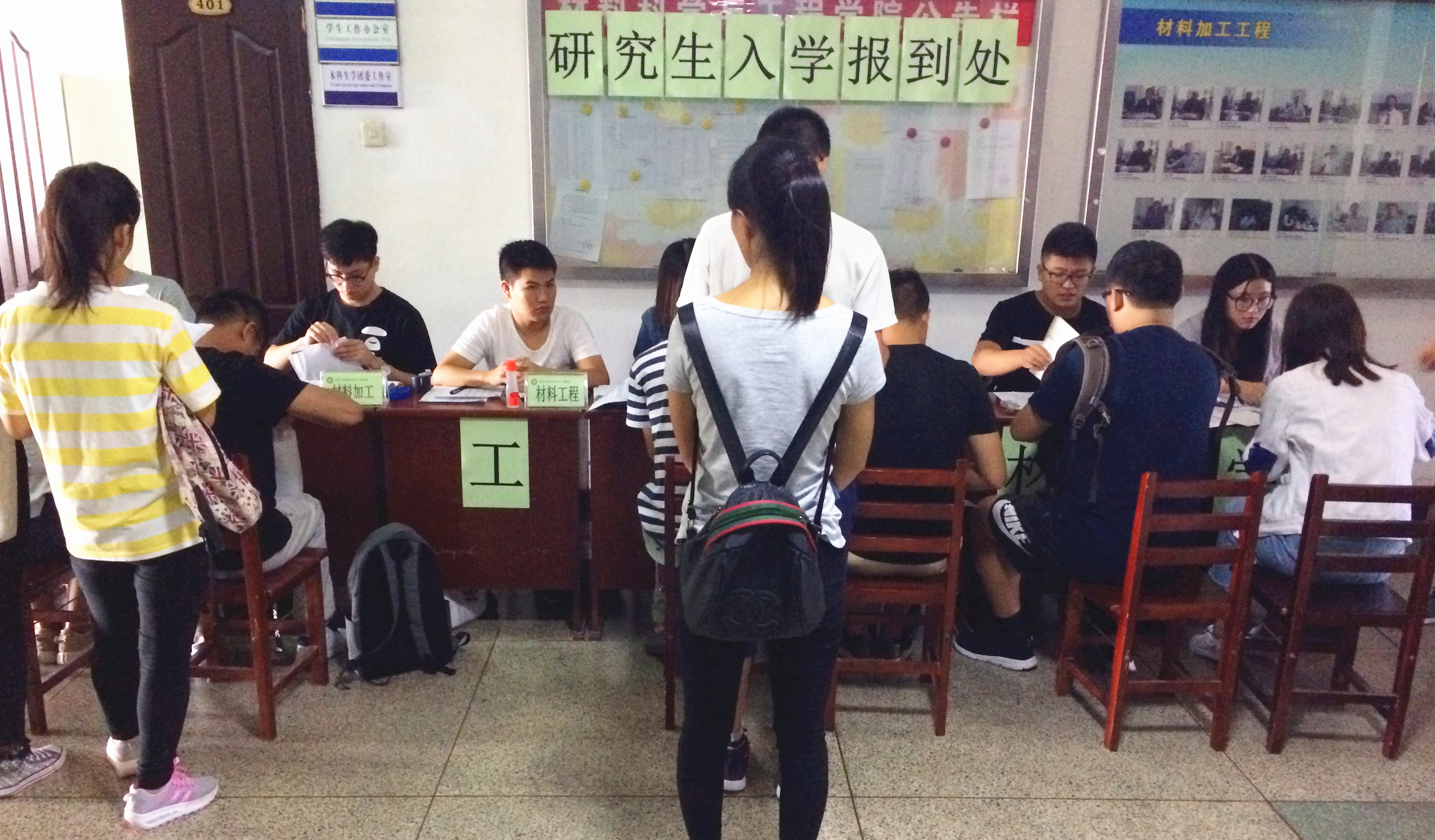 在逸夫机械材料馆开展研究生迎新工作。来自五湖四海的两百多名2017级研究生新同学陆续完成入学手续的办理。