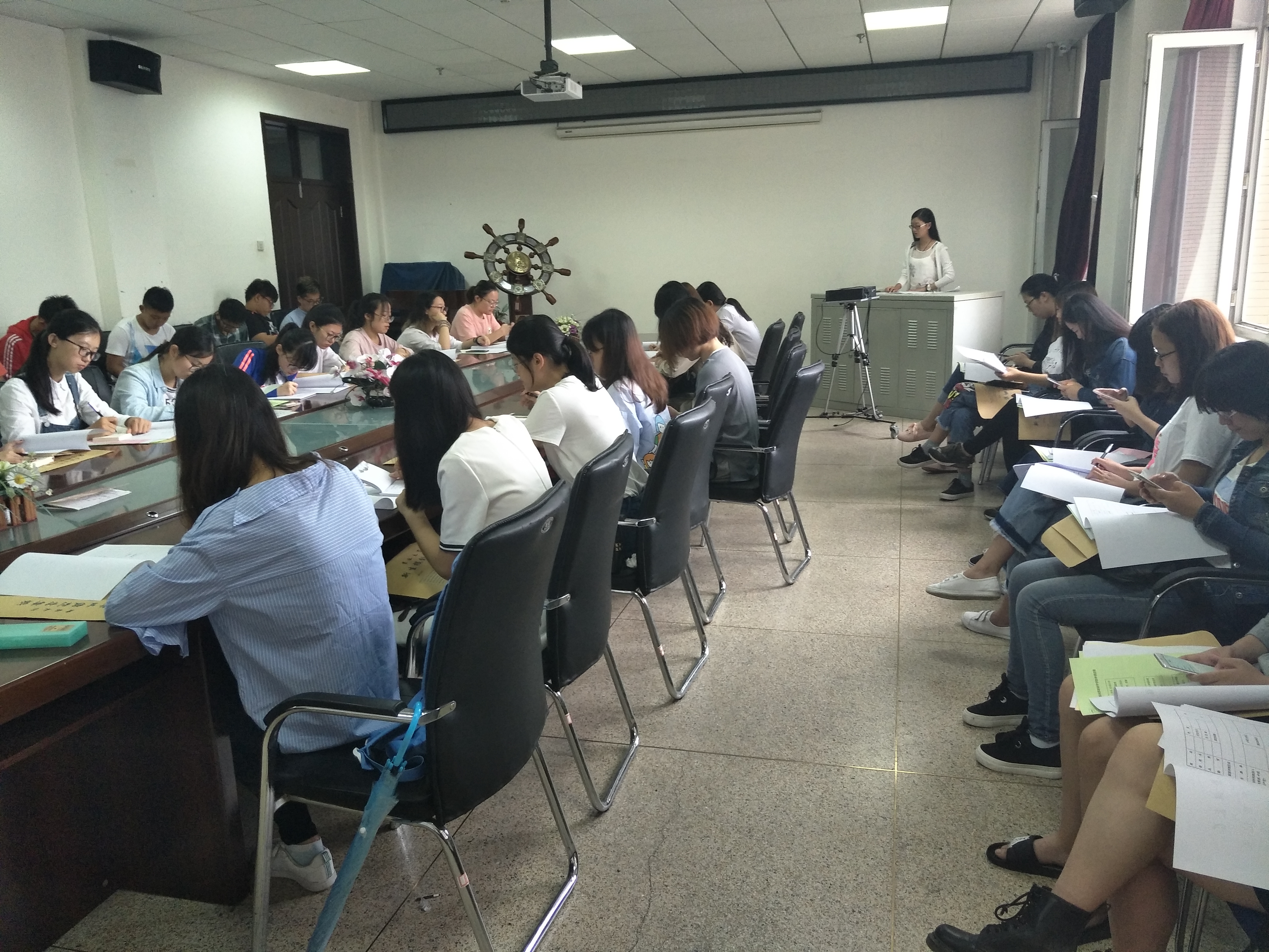 在线娱乐城 2017级新生迎新工作系列报道(一)——前台人员培训 整理新生档案