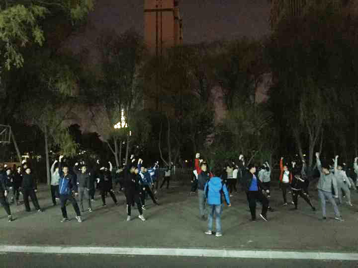 2016级学生于每晚8时30分准时在指定地点集合完毕,并在社团联合会工作人员的指导下进行训练,他们与指导人员一起刻苦努力,对自身每一个动作都要求十分严格,一板一眼,丝毫不懈怠。随着训练次数的增加,参赛学生对长拳的每个动作渐熟于心,阵式也逐渐整齐统一。