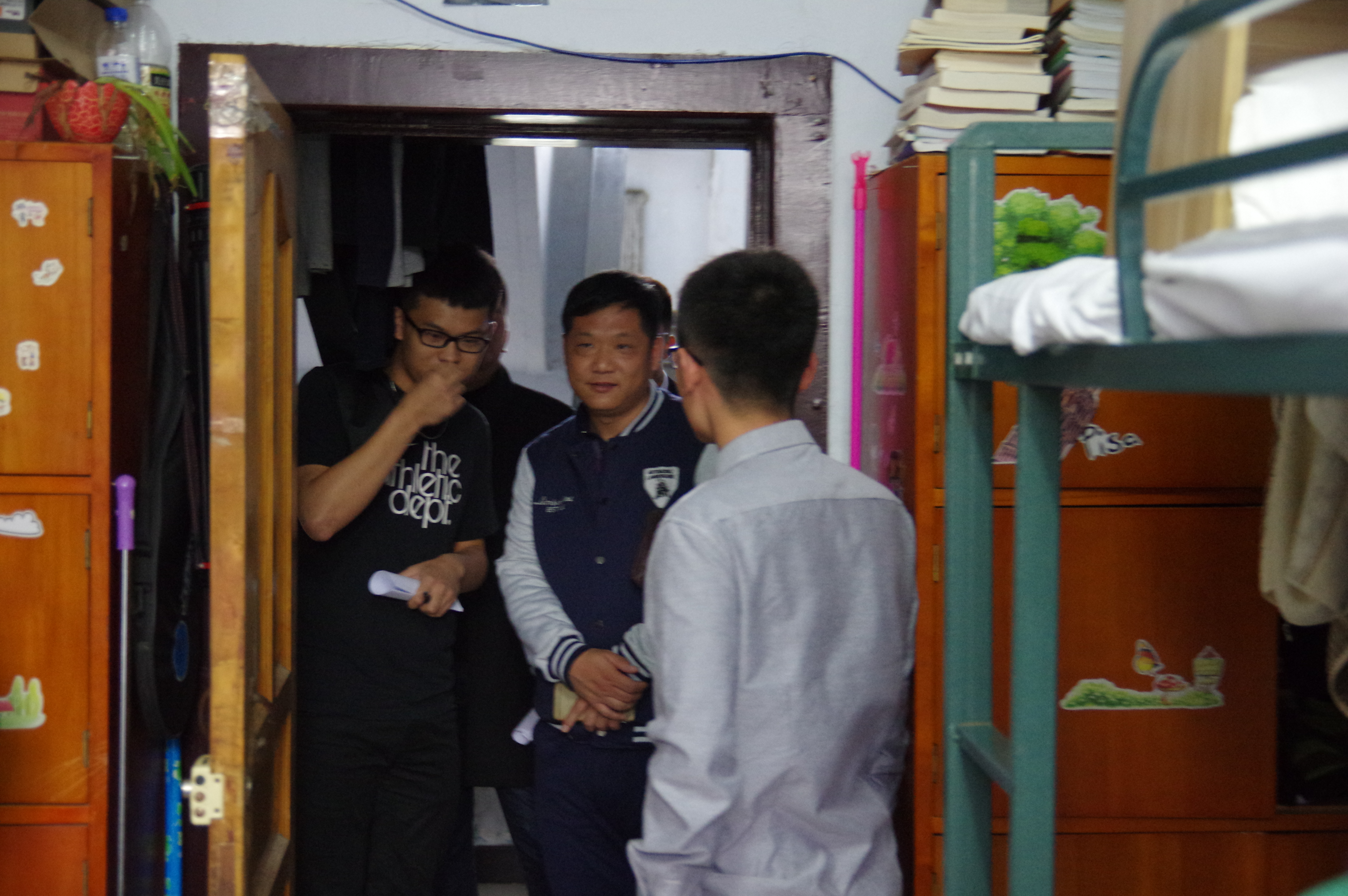 活动在十一公寓展开,李书记和老师们首先走访了2013级学生的寝室,并和他们亲切交谈,在访问过程中发现,学生精神状态很好,学习与寻找工作进展顺利,寝室卫生普遍情况较好,个别寝室存在卫生不合格现象,张老师对这些寝室的学生进行了督促。随后对学生二公寓进行了走访,因2014级学生寝室较小,物品较多,摆放存在问题,但学生寝室依然干净卫生。在对十三公寓2015级学生寝室的访问中,李书记和佟老师均表示满意,学生在行为表现、寝室卫生及物品摆放上普遍表现良好。在此次检查中2016级学生表现最为突出,同学们文明礼貌,寝室干净整洁,装饰丰富多彩,将寝室装扮出家的感觉。