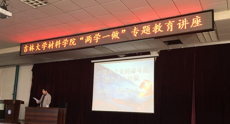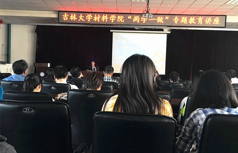 党委在材料馆楼会议厅召开了“两学一做”专题教育活动。学院领导班子成员及党委范围内的全体党员参加了此次活动。活动由党委书记周岩松主持,陈松友教授作《中国共产党的奋斗历程及基本经验》专题报告。