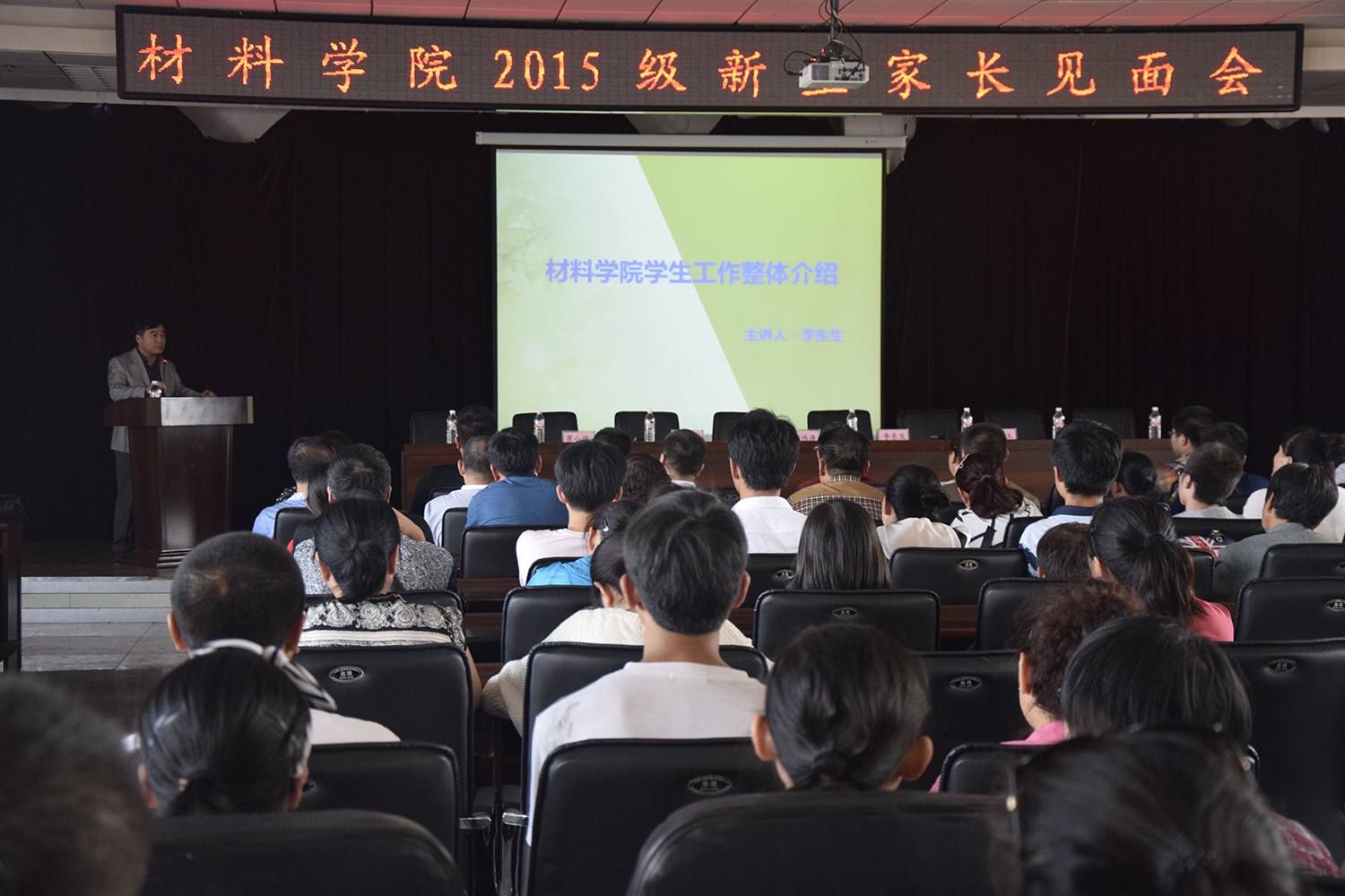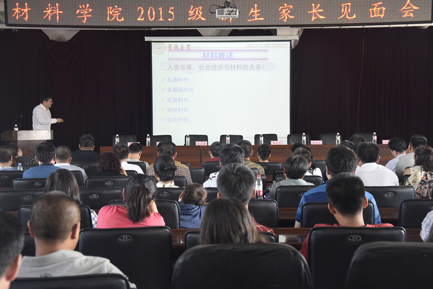 首先党委书记周岩松向考入吉林大学材料学院的新同学表示祝贺、向为学生成长付出辛勤劳动的家长表达敬意。院长郑伟涛教授围绕学院情况、人才队伍情况、科研、教学与本科生培养、仪器设备、对外合作、专业概述等方面的介绍了学院的情况,党委副书记李东生介绍了学院学生工作情况。在家长提问环节,老师们一一解答了家长关心的专业研究方向、就业情况、出国准备等大学生可能面临的问题。同时,老师们提醒新生注意安全问题,“人身安全”、“财务安全”,“环境安全”等方面都要提高警惕。整场座谈会在愉快的氛围下结束。 新生家长对本次会议给以了高度评价。