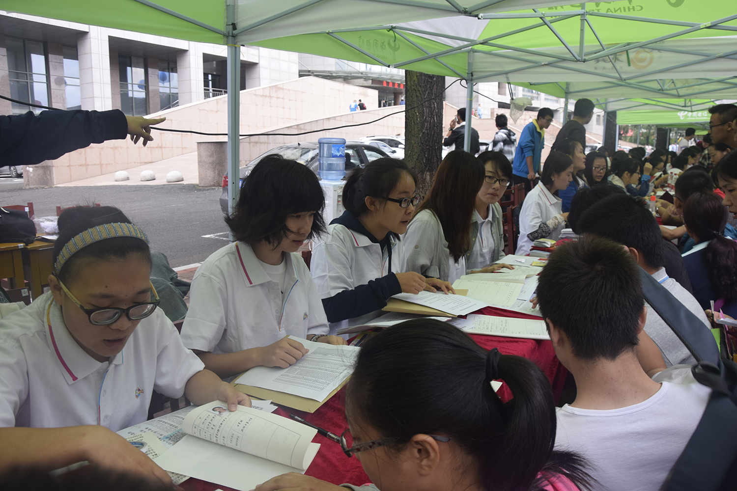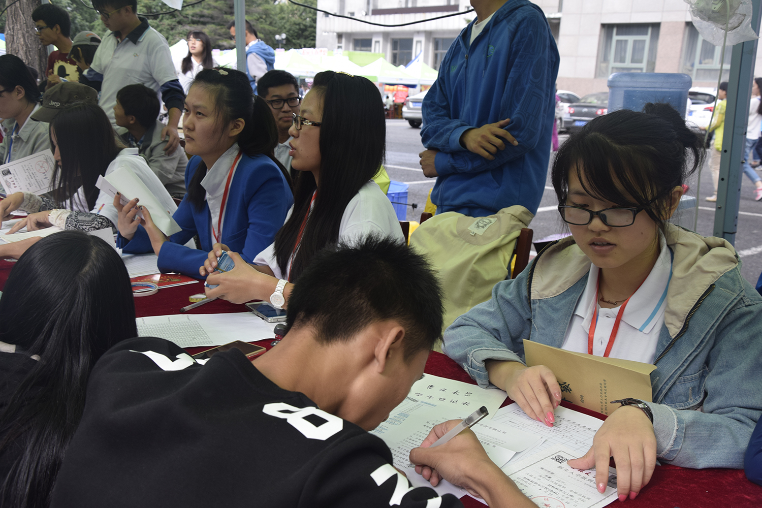 新生陆续地到来了,早在西门负责接待的志愿者们为新生提行李、指路或将他们送往对应班级报名点。驻守迎新地点的志愿者们也以他们最大的热情迎接来自祖国各地的新生,搬行李、引路、发钥匙、帮忙办置生活用品、介绍学校及宿舍情况;负责新生接待的志愿者们热情地接待新生们,训练有素的志愿者们娴熟地指导他们填写入学报到资料,为他们整理档案袋,并对他们提出的问题耐心地解答。为保证新生们得到及时的接待,接待人员们需要早早的布置好报到的各个程序。登记填卡、交费咨询、分发钥匙、搬运行李等环节的工作人员不但在态度上严格要求自己,在效率和方式上也经过了反复的讨论和研究。总之,为了新生的大学生活有个美好的开始,我院的志愿者们都不遗余力。新同学们对志愿者的热情服务连连道谢。志愿者们同心协力,从点点滴滴做起,都希望可以让新生们能尽快适应崭新的大学生活。