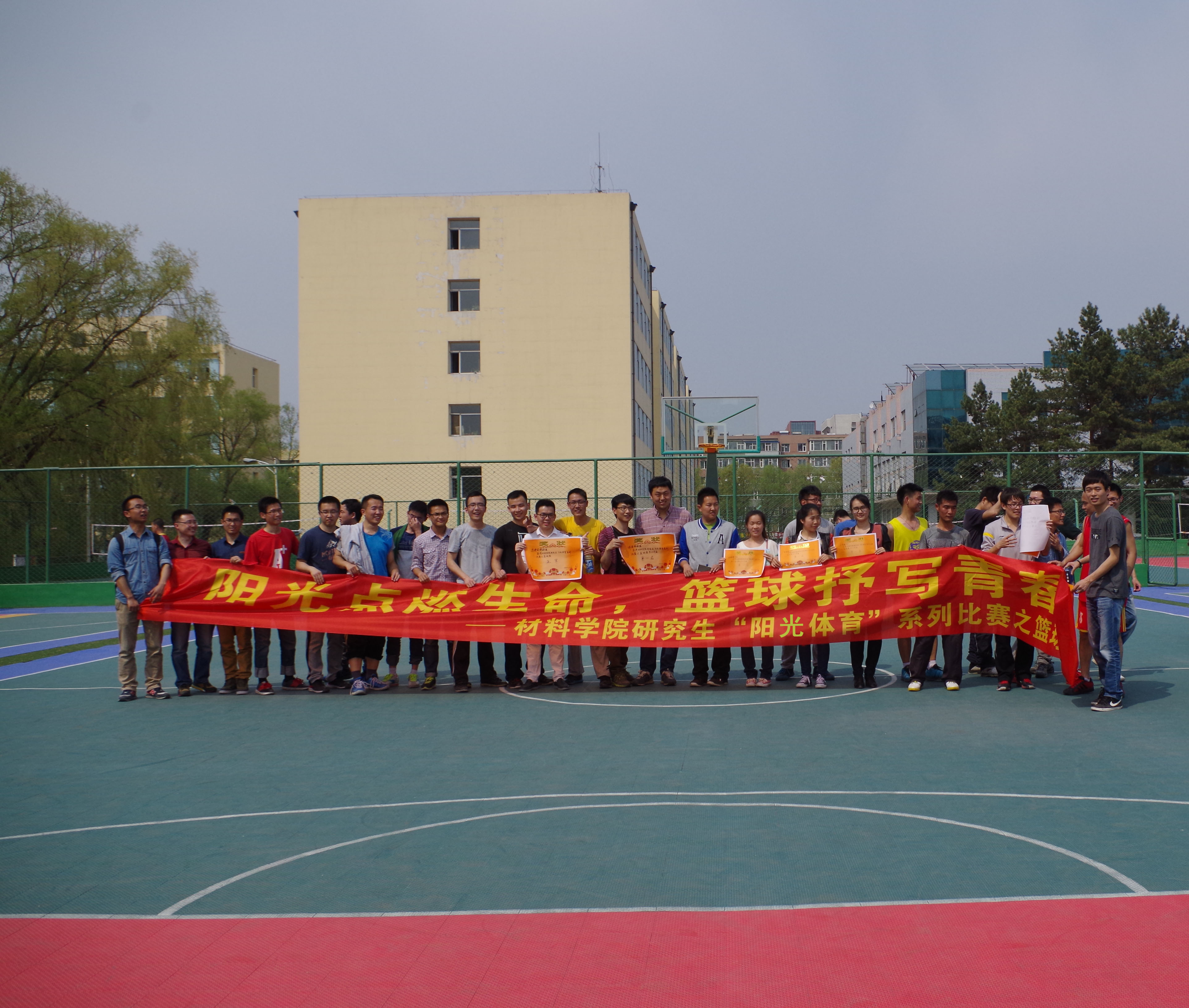 研究生学生会文体部于2015年4月15日至4月28日成功举办了“阳光体育”系列比赛之篮球赛。