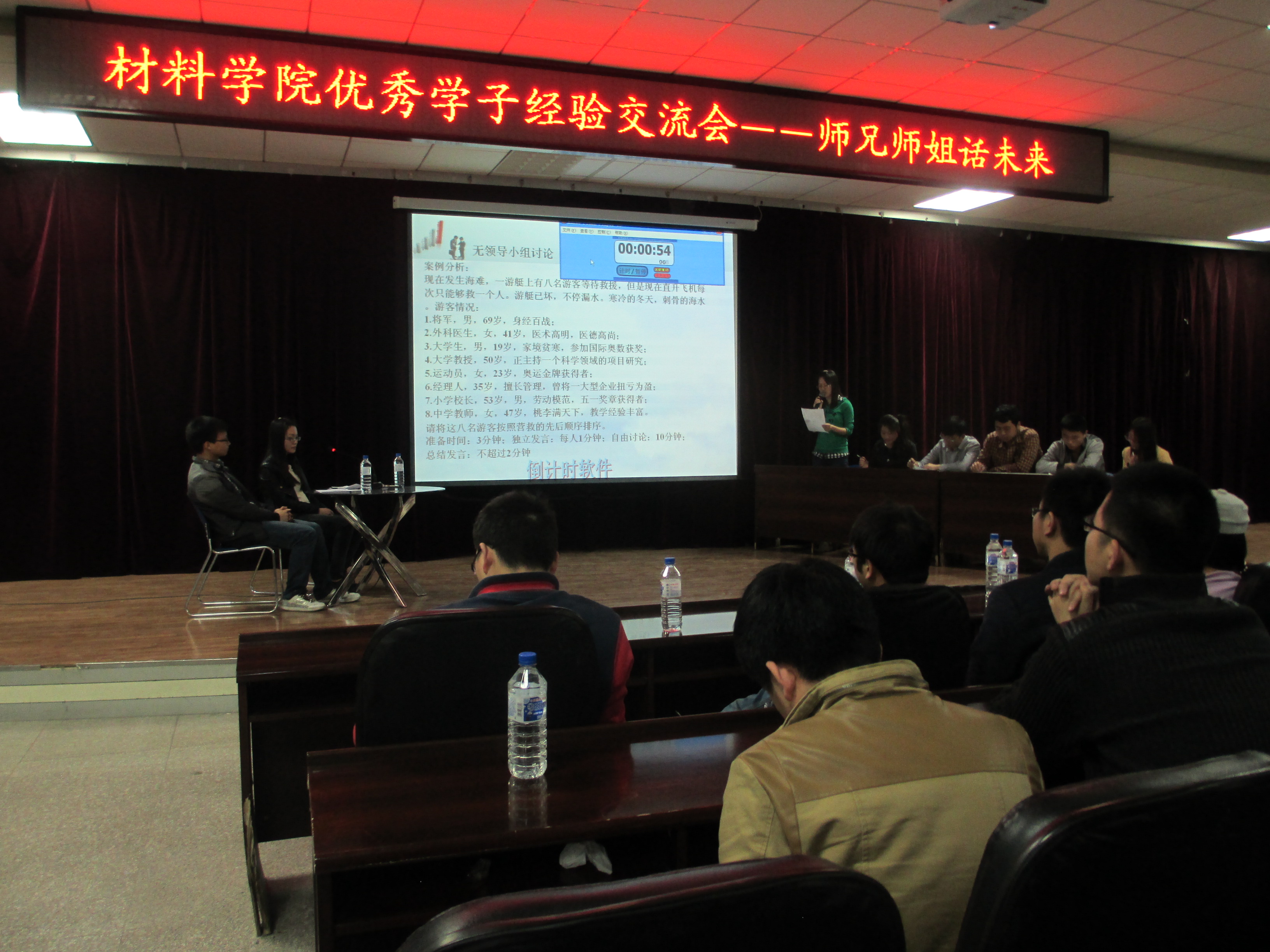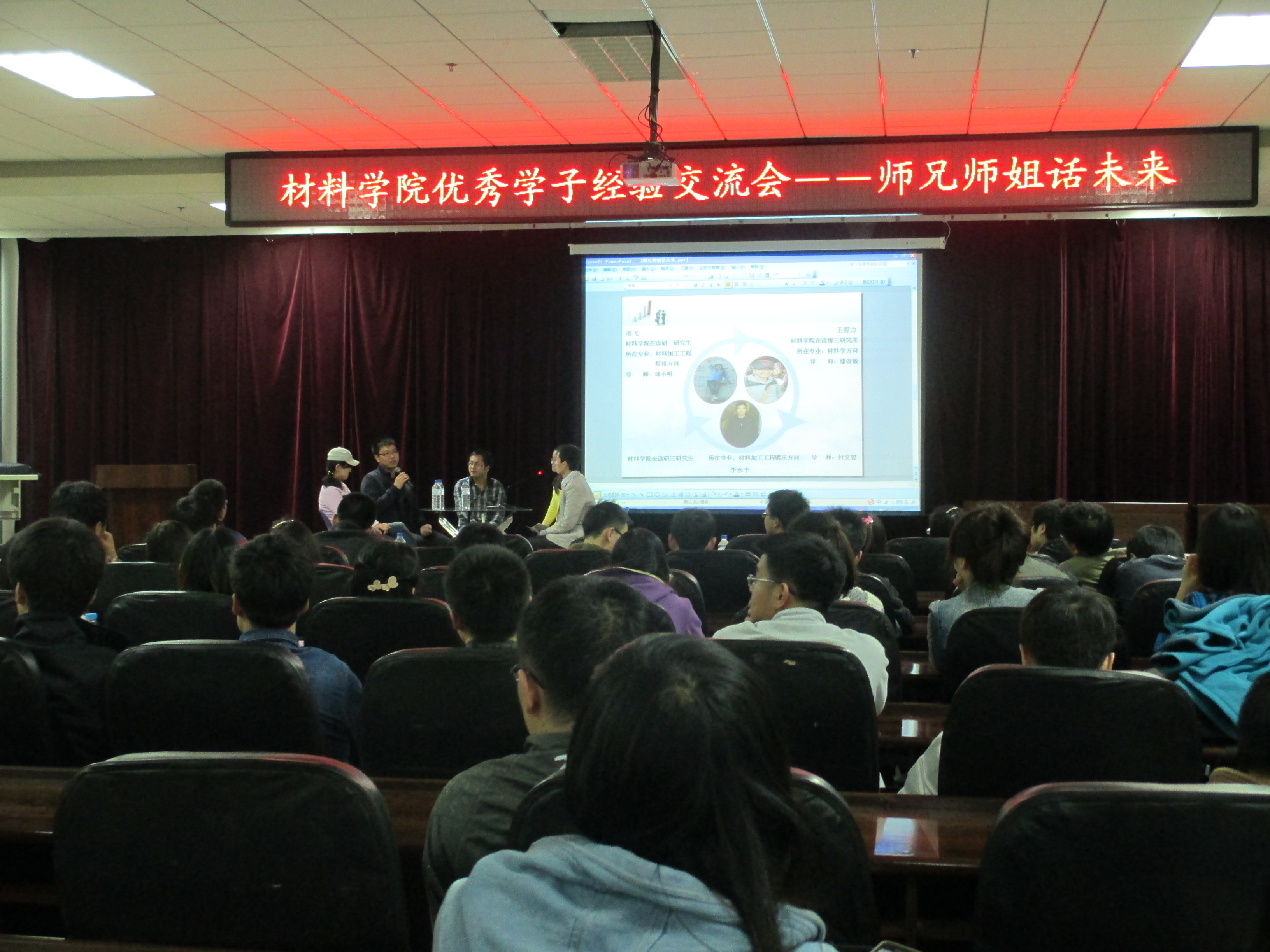 研究生学团委学术实践部于4月27日晚6:30在机械材料馆八楼成功举办以 “科研就业面对面” 为主题的“优秀学子经验交流会——师兄师姐话未来”活动。