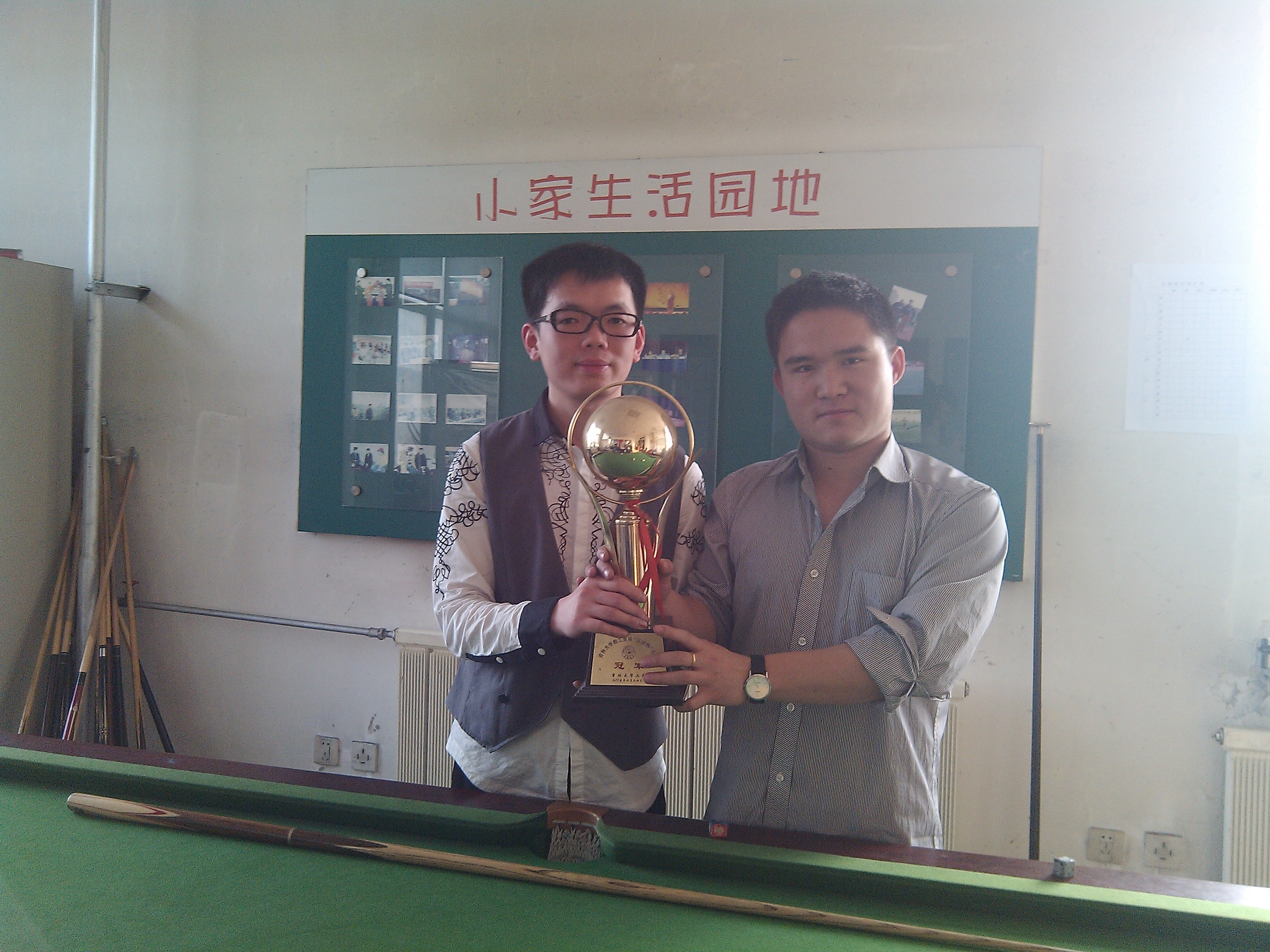 在学团委各位成员的共同协作之下,桌球赛顺利拉开帷幕。竞赛规则遵循国标普尔八球(黑八)个人赛的赛制,按照抽签的结果决定的分组结果正式开始。比赛初赛阶段采用小组赛,复赛采用淘汰赛,决赛采用循环积分赛,共有近20名同学参加了这次竞争激烈的角逐。比赛开始后,选手们一张一弛彰显绅士风范,一动一静尽显王者风采,同时,精彩的球技也表现的淋漓尽致。各位选手表现出色,华丽的球姿,专注的表情,恰好的力道,精确的走位,严密的防守无不体现着选手们专业的水平。随着比赛的进行,选手们华丽的球技令在场观众不时发出阵阵叫好声。经过多轮的淘汰和激烈的角逐,陈志凯同学以精湛的球技蝉联冠军,也标志着本次比赛的圆满结束。