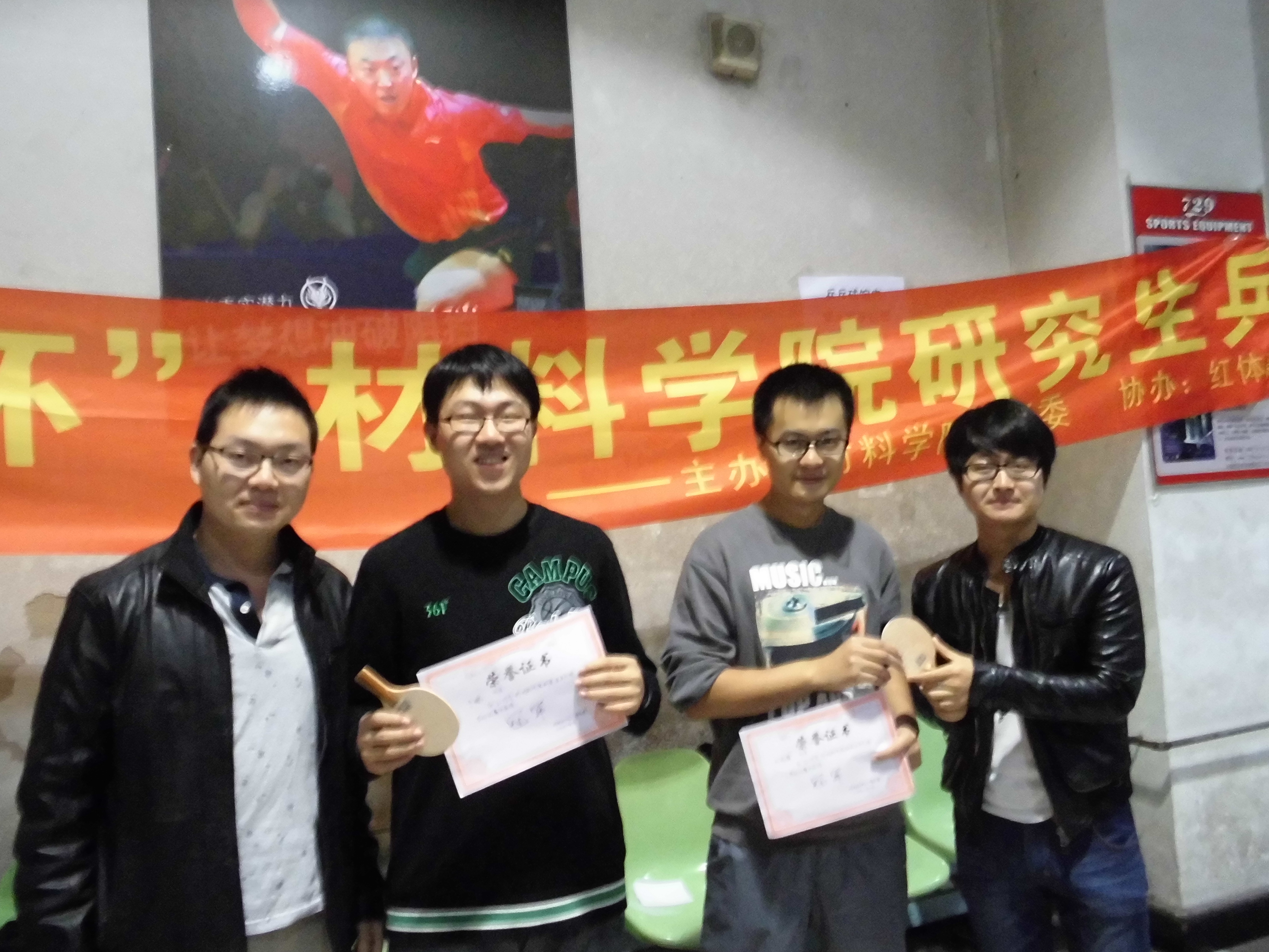 经过半个月紧锣密鼓的精心筹备,比赛于10月13日下午拉开了帷幕。本次比赛共有近三十名选手报名参加,比赛包括男子单打、女子单打、男子双打这三个项目,采用循环积分赛与淘汰赛进行,为各位乒乓球爱好者提供了展示自己的舞台。比赛开始后,各位选手都以自己最饱满的热情和最高涨的积极性全身心的投入到本次比赛当中,在赛场上展开了激烈的争夺,挥汗如雨,奋力拼搏,赛出了自己的水平和实力。随着比赛的进行,赛事亦愈加激烈和精彩,赛场上不时传出热烈的加油喝彩声,兴奋的“好球”声不断。经过多轮的淘汰和激烈的角逐,屈忠宝等同学获得了最终的胜利,也标志着本次比赛的圆满结束。