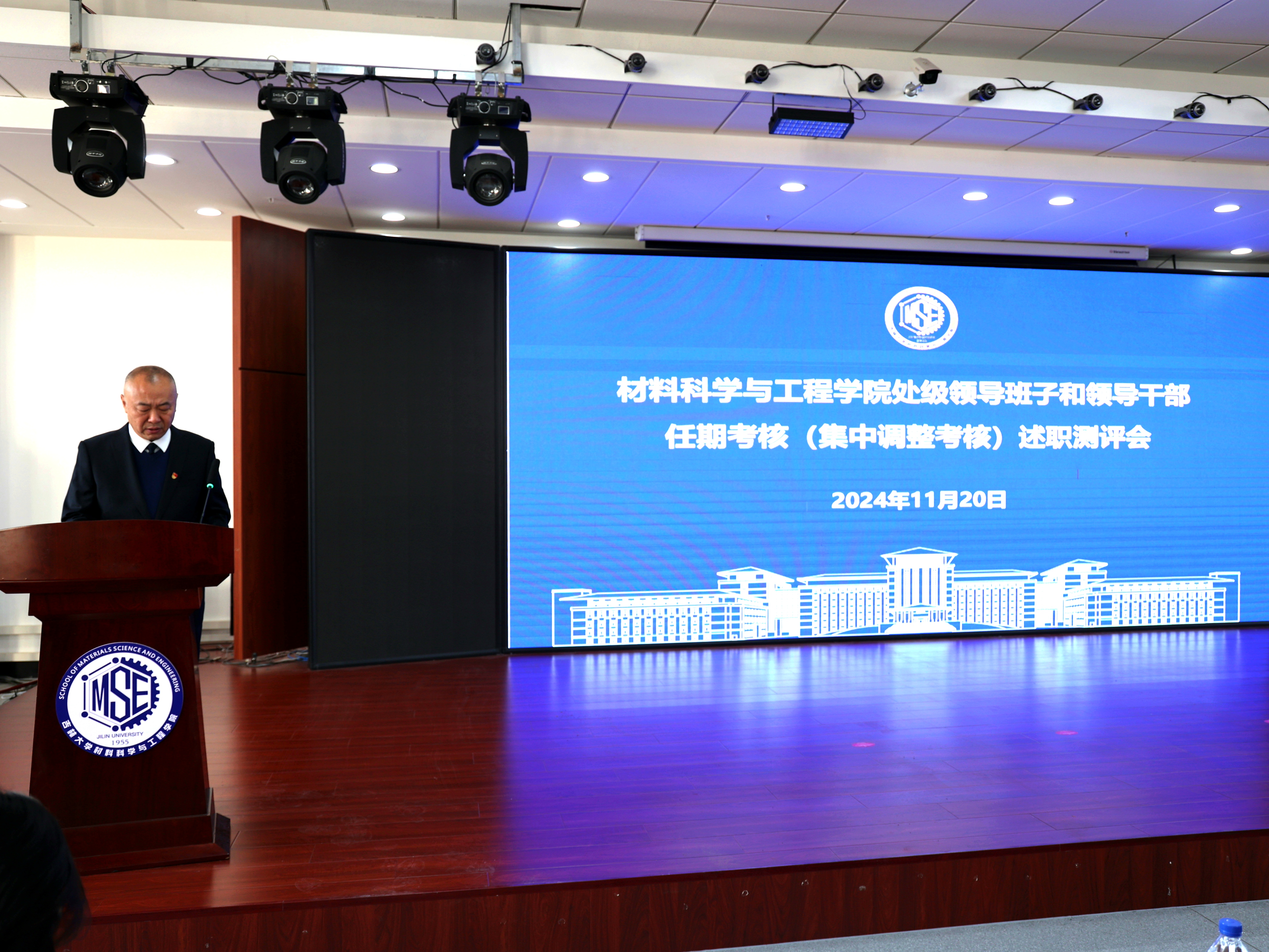 在材料馆八楼报告厅召开处级领导班子和领导干部任期考核(集中调整考核)述职测评会,学院教职工代表参加会议,会议由党委书记刘远主持。