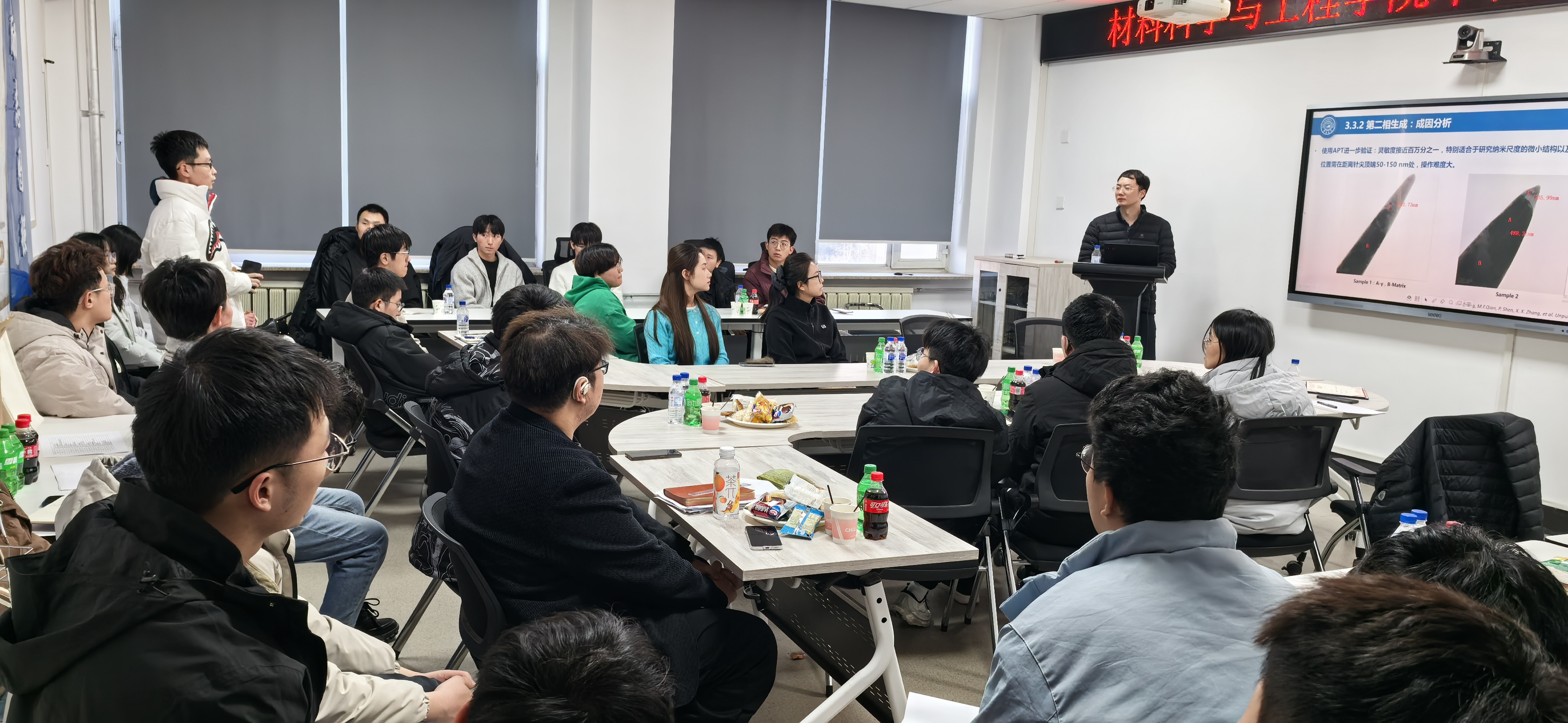 第十一期“博材研辩”研究生学术沙龙于2024年11月20日下午在吉林大学南岭校区机械材料419,2024年11月22日下午在吉林大学前卫南区唐敖庆楼D429举办。本期学术沙龙南岭会场邀请了2022级材料加工工程博士钟诗江进行学术分享,主持人为沈平老师;南区会场邀请了2022级材料与化工专业硕士赵禹曈进行学术分享,主持人为于陕升老师。