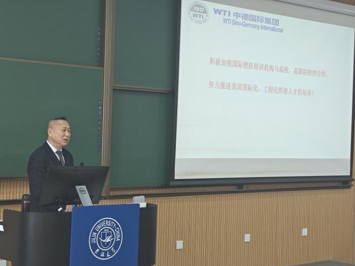 报告会上,特别邀请到了原吉林大学材料学院教授、现中车长春轨道客车股份有限公司副总工程师、中国中车科学家、国务院特殊津贴获得者王春生教授进行现身说法,他凭借自身丰富的经验和深厚的专业知识,为在校生们深入剖析了国际焊接工程师(IWE)证书对其日后工作的重要性。