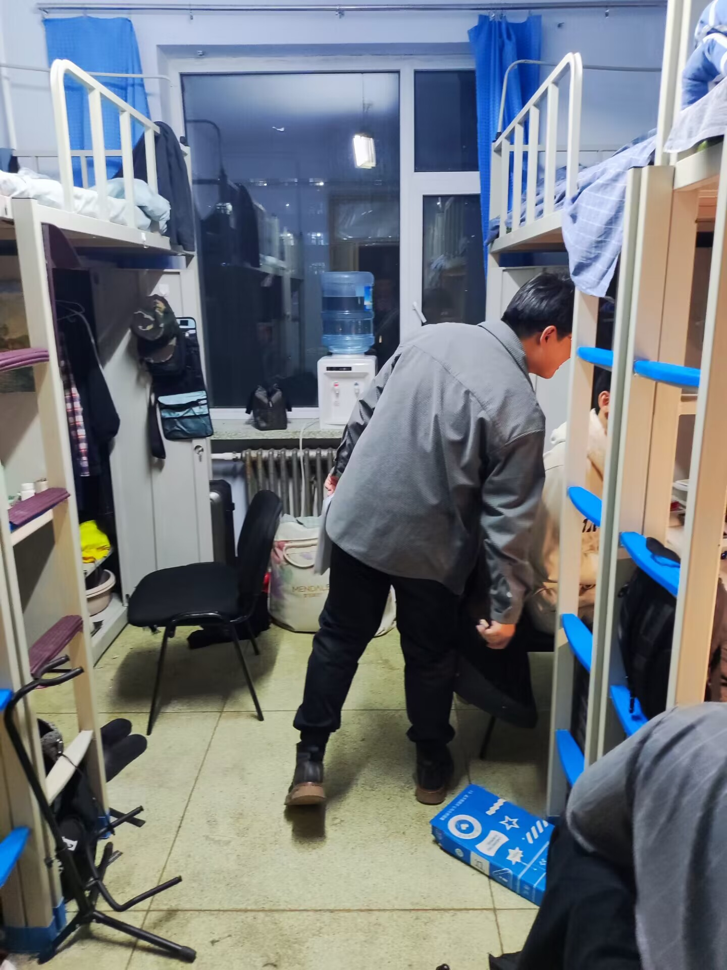 在走访过程中,张晗禹老师首先与学生交流了假期生活和学习情况,也解答了同学们对新学期的相关疑问,叮嘱大家要合理调整作息时间,有计划地进行返校期末考试备考以及新学期课程学习。此外,张老师提醒学生树立健康意识,当好个人健康第一责任人,同时对学生公寓安全隐患进行检查,重点摸排火灾隐患和其他违规情况,营造了安全整洁的寝室居住环境。