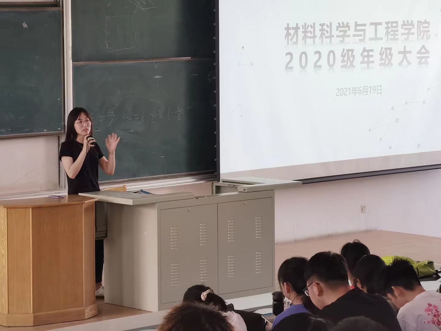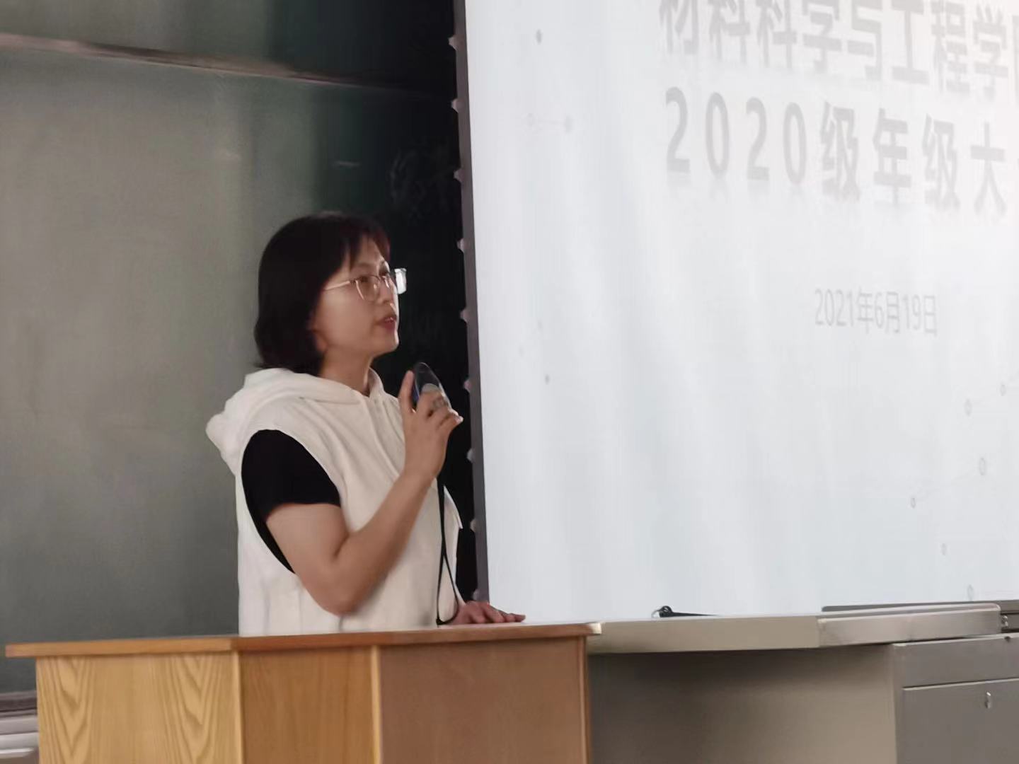 于2021年6月19日上午11点在逸夫教育大楼A411就诚信考试主题召开年级大会,院党委副书记华蕊、辅导员王晗出席本次大会,2020级材料类专业同学参加。
