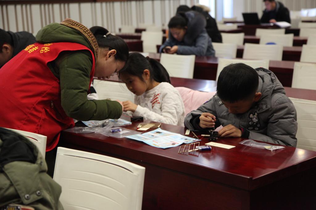 活动伊始,老师带着同学们参观了展厅,向同学们介绍了原始社会和古代的人们创造并使用过的工具以及一些生存技巧,描述生动形象、引人入胜,每个人都听得格外认真。第二项活动是知识小课堂,同学们通过老师演示的小实验,体验到了一些生活中的科学,也对化学知识产生了更加浓厚的兴趣。紧接着,老师讲述了一些器皿的制作过程以及地动仪的制作原理,让同学们了解到博物馆中沉浸千年的科技。最后是巧手制作环节,同学们在老师和志愿者们的帮助下,完成了具有现代科技要素的“地动仪”。在制作过程中,同学们既锻炼了动手能力,又巩固了今天学习的知识,感受到了古人的智慧。活动圆满结束。